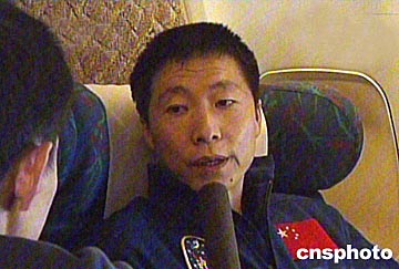 圖:楊利偉接受采訪描述返回時(shí)的感受