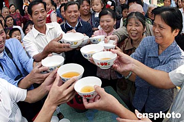 中新社福州十月十六日電 題:黃春平鄉(xiāng)親歡呼“神舟”五號(hào)飛天