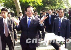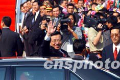 今天的澳門,陽光燦爛,氣候宜人。大三巴牌坊前,游客游興正濃。九時十分左右,曾慶紅在唐家璇、廖暉、何厚鏵等陪同下,來到大三巴牌坊參觀。眾多游客見到國家領導人,立刻涌向前來。曾慶紅熱情地向大家打招呼:“大家好!”