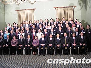由于在座的人士長期在國外生活和工作、學(xué)習(xí),都很關(guān)心中國的發(fā)展變化,胡錦濤主席向大家簡要地介紹了中國國內(nèi)喜人的形勢和中共中央最近為了繼續(xù)推進(jìn)改革開放和現(xiàn)代化建設(shè)所作出的三項(xiàng)重大決策。