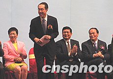 第七屆北京·香港經(jīng)濟(jì)合作研討洽談會(huì)二十三日在北京飯店舉行開幕儀式,香港特別行政區(qū)政府財(cái)政司司長(zhǎng)唐英年(左二)致辭表示:北京與香港通過(guò)CEPA的合作將使雙方呈現(xiàn)“雙龍出海”之勢(shì)。中新社記者:廖文靜