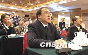 中國(guó)文化部副部長(zhǎng)孟曉駟、中國(guó)廣電總局副局長(zhǎng)趙實(shí)二十四日在北京貴賓樓飯店會(huì)見(jiàn)了來(lái)自香港的影視演藝界訪京團(tuán),雙方交流了關(guān)于大陸和香港文化發(fā)展的部分意見(jiàn)。圖為香港導(dǎo)演王晶(中)在見(jiàn)面會(huì)上。中新社記者:廖文靜