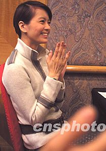 中國(guó)文化部副部長(zhǎng)孟曉駟、中國(guó)廣電總局副局長(zhǎng)趙實(shí)二十四日在北京貴賓樓飯店會(huì)見(jiàn)來(lái)自香港的影視演藝界訪京團(tuán)。香港藝人梁永琪一改清純少女形象,以整齊的束發(fā)和正式套裝參加會(huì)見(jiàn)。中新社記者:廖文靜