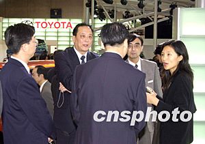 顯示世界汽車(chē)工業(yè)發(fā)展脈絡(luò)的2003東京國(guó)際汽車(chē)展,吸引了中國(guó)國(guó)家發(fā)展和改革委員會(huì)官員前往考察。中新社記者:王健