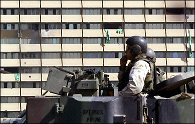 酒店遭襲后,幾十名美國(guó)官員身穿睡衣短褲逃出酒店,疏散到酒店對(duì)面由聯(lián)軍控制的會(huì)議中心。事件中1名美軍上校喪生,15名傷者中包括4名美軍、7名美國(guó)平民和4名替聯(lián)軍工作的外國(guó)人,包括1名英國(guó)男子,他是聯(lián)軍臨時(shí)政府職員,傷勢(shì)嚴(yán)重。