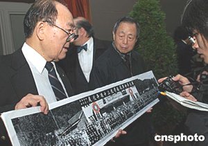 國民革命軍遺族學(xué)校同學(xué)會(huì)北美分會(huì)會(huì)長(zhǎng)向厚祿和他的校友們今天長(zhǎng)久地徘徊在殯儀館門外。向先生手捧舊照,回憶一九五○年十一月蔣介石、宋美齡夫婦參加該校三十周年校慶時(shí)的情景。他說,蔣夫人生前多次去學(xué)校視察,常關(guān)心陣亡將士的子女是不是吃得飽、穿得暖。