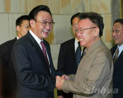 吳邦國首先轉達了胡錦濤總書記、江澤民主席、溫家寶總理對金正日的親切問候。他說,中朝兩國領導人有著經(jīng)常來往的傳統(tǒng)。過去幾年里,您兩次訪華,江澤民同志訪朝,都有力地推動了兩國友好關系的發(fā)展。胡錦濤總書記期待著您在方便時再次訪華。