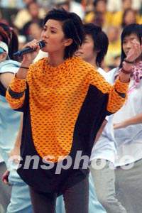 香港樂壇組合TWINS周六在香港大球場舉行的各界歡迎楊利偉大會上為觀眾演唱。中新社記者:錢興強