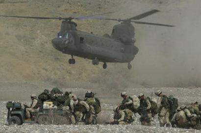 美國(guó)軍方稱(chēng),一架美軍“支努干”直升機(jī)星期天在飛往巴格達(dá)機(jī)場(chǎng)時(shí)被擊落,至少有二十人在這一事件中傷亡。圖為被擊落的同型直升機(jī)資料圖片。