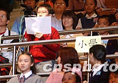 11月3日在香港伊利莎白體育館舉行的香港中、小學(xué)生與楊利偉及航天科學(xué)家見面會(huì)上,學(xué)生興高采烈舉著楊利偉像歡呼。中新社記者:錢興強(qiáng)