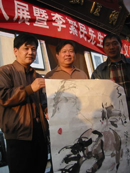 “太陽星城愛心之旅”的成員——著名畫家李繁民先生現(xiàn)場揮毫作畫,頃刻之間,一匹匹栩栩如生的駿馬就躍然紙上。在旁觀者中,有不少人是書畫愛好者,他們就著李老師的駿馬圖點(diǎn)評(píng),贊嘆聲不絕于耳。杭州的陳先生也是畫馬的愛好者,他說:“李老師的畫已經(jīng)跳出了傳統(tǒng)畫馬的局限,有自己的創(chuàng)新之處。”