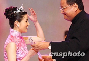 “2003中華小姐環(huán)球大賽”總決賽11月8日晚在香港會(huì)展中心舉行,經(jīng)角逐來自上海的參賽選手江欣榮獲中華小姐大賽冠軍。中新社記者:錢興強(qiáng)