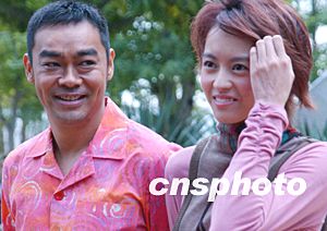 香港明星劉青云、梁詠琪十一月十日在香港舉行的電影《絕世好賓》開鏡拜神儀式上。中新社記者:錢興強(qiáng)
