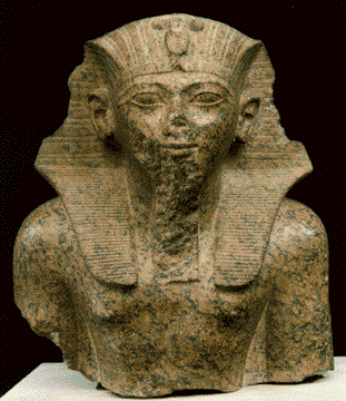 在這批珍品中最引人矚目的是具有千年以上歷史的古埃及新王國時期的圖特穆斯四世的花崗石半身像。這件原本保存于盧浮宮內的古埃及文物,最大特色在于他頭頂上的那個蛇形頭冠。
