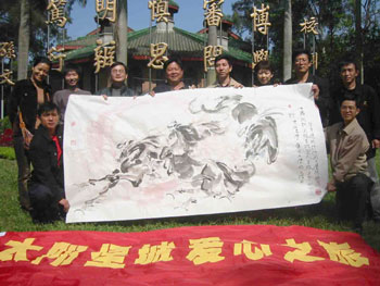 富明慧接受太陽(yáng)星城愛心之旅贈(zèng)畫(華夏時(shí)報(bào)圖,太陽(yáng)星城愛心之旅特派記者 大漠/攝)