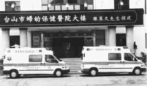 今年10月份,陳策文夫婦回到臺(tái)山與該市婦幼保健醫(yī)院的醫(yī)務(wù)人員開座談會(huì)。當(dāng)了解到該院的醫(yī)療用車是由面包車改裝而成,功能不夠完善,影響醫(yī)療質(zhì)量時(shí),陳先生立即決定捐贈(zèng)先進(jìn)醫(yī)療專用汽車給婦幼保健院和斗山醫(yī)院,解決了兩院醫(yī)療用車問題。