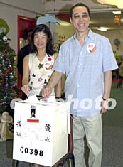 中新社香港十一月二十三日電(記者陶社蘭)香港特區(qū)第二屆區(qū)議會(huì)選舉今天舉行,港九新界四百二十三個(gè)票站今早七時(shí)三十分至晚上十時(shí)三十分開(kāi)放,供二百四十余萬(wàn)名選民投票。行政長(zhǎng)官董建華等特區(qū)高官參加投票。