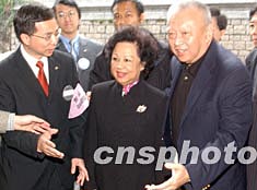 二零零三年香港特別行政區(qū)區(qū)議會選舉投票日十一月二十三日在香港十八個區(qū)同時進行投票選舉,香港特別行政區(qū)行政長官董建華與夫人董趙洪娉一起來到圣若瑟英文書院投票。 中新社記者:錢興強