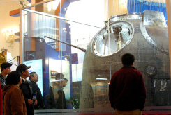 據(jù)悉,已有數(shù)千名北京市民24日來(lái)到北京展覽館,觀看在該展會(huì)中亮相的“神舟五號(hào)”返回艙、主降落傘,還有楊利偉穿過(guò)的太空服、吃過(guò)的太空食品等。
