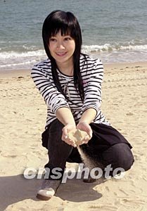 歌星關(guān)心妍11月26日在香港赤柱正灘為無線電視拍攝音樂劇《愛在富豪海灣的日子》外景,關(guān)心妍閑來在沙灘弄沙,浪漫一番。作者:鄧慶樂