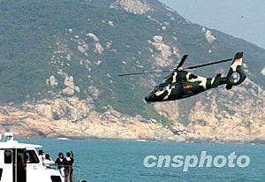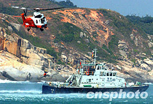 今天的演習(xí)由民航處籌辦,于南丫島東澳灣舉行,百多人參加。演習(xí)分三部分進行,包括由政府飛行服務(wù)隊和民眾安全服務(wù)處聯(lián)合在東澳灣山邊進行拯救,并由政府飛行服務(wù)隊派出超級美洲豹AS332L2型直升機示范在甲板吊救模擬傷者,消防處的潛水隊伍隨即示范海上搜救。最后,駐港部隊派出一架“直九”直升機進行空中搜索示范,結(jié)束整項短程演習(xí)。