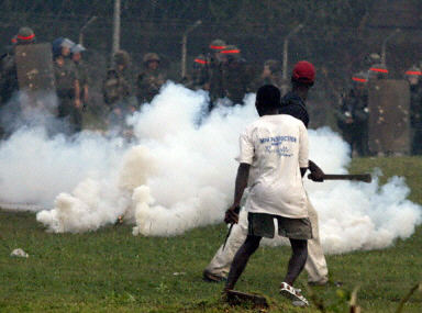 法國(guó)軍隊(duì)開始向示威人群發(fā)射擊催淚彈和震撼手雷,但更多的示威者仍源源不斷地向法軍基地開來(lái),并且分批分撥地向法國(guó)軍事基地發(fā)動(dòng)攻擊。法軍發(fā)言人向路透社記者證實(shí)說(shuō):“看樣子示威增援人員已經(jīng)開到了。”這些抗議者開始用石頭猛砸法軍基地,在基地入口焚燒輪胎,科特迪瓦的準(zhǔn)軍事部隊(duì)也趕到基地附近,但沒有干預(yù)抗議者的做法。