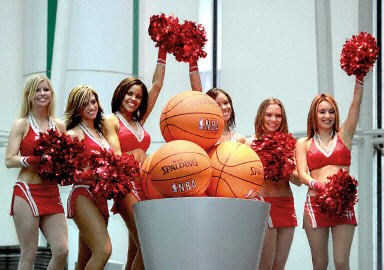 火箭啦啦隊(duì)的“辣妹”們11月25日在紅牛飲料北京簽約式上表演。紅牛飲料在中國成為NBA官方指定飲料。