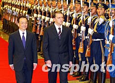 中新社北京十二月三日電(記者齊彬)中國國務(wù)院總理溫家寶三日在人民大會(huì)堂與來訪的斯洛文尼亞總理羅普舉行會(huì)談。