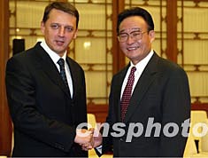 中新社北京十二月四日電(記者張朔)中國(guó)全國(guó)人大常委會(huì)委員長(zhǎng)吳邦國(guó)今天下午在人民大會(huì)堂會(huì)見首次訪華的斯洛文尼亞總理羅普時(shí)說,中國(guó)新一屆中央領(lǐng)導(dǎo)集體高度重視發(fā)展與斯洛文尼亞的關(guān)系。