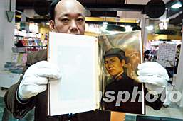 這部《毛澤東詩詞手跡》精選了《沁園春·雪》等17幅詩詞手跡,4幅反映毛澤東同志不同時(shí)期的珍貴照片,全書采用納米技術(shù)以純度達(dá)99.%的黃金紙精心印制而成。金書的封面鑲嵌著上海造幣廠制造的純金毛澤東頭像章,書的封盒為紫檀木手工雕成,江澤民同志為該書題寫了書名。劉蔚丹 攝