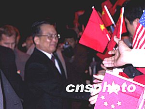 美國國務(wù)院禮賓司司長埃斯納特、安德魯空軍基地空軍準(zhǔn)將格雷、美國國務(wù)院助理國務(wù)卿凱利到機(jī)場(chǎng)迎接。二百多名當(dāng)?shù)厝A人華僑和大使館工作人員也到機(jī)場(chǎng)熱烈歡迎溫家寶總理。