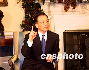 當(dāng)天上午的歡迎儀式后,溫家寶與布什先進(jìn)行了小范圍會(huì)談,會(huì)見了記者,然后雙方又進(jìn)行了大范圍會(huì)談,就中美關(guān)系和一些重大國(guó)際問題交換了看法。
