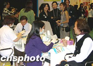 “媽咪寶寶暨家庭健康博覽2003”十二月十二日在香港會展中心開幕,主辦機(jī)構(gòu)提供的十多項免費(fèi)健康測試及現(xiàn)場健康咨詢服務(wù)受到與會者青睞,并成為博覽會特色之一。作者:潘索菲