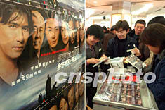 十二月中旬,眾多顧客在北京一家書店搶購與電影同步發(fā)行的《無間道3》影碟。該片正在北京等地熱映,在中國內(nèi)地的票房取得開門紅。中新社記者:張煒
