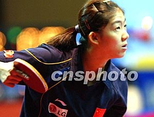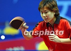 香港選手柳絮飛在二零零三年女子世界杯乒乓球賽十二月十八日進(jìn)行的賽事上以4:0擊敗羅馬尼亞選手巴蒂斯庫。中新社記者:錢興強