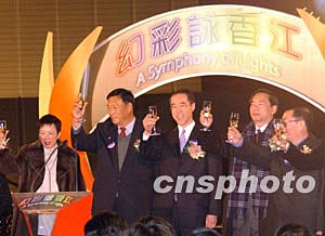 香港特別行政區(qū)財政司司長唐英年、國家旅游局局長何光偉等十二月二十日晚出席香港“幻彩詠香江”啟動儀式。中新社記者:錢興強