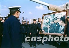 毛澤東于1953年2月19日首次視察解放軍海軍部隊,在武漢登上“洛陽”艦和該艦官兵一起航行,并揮毫題詞:“為了反對帝國主義的侵略,我們一定要建立強大的海軍”。“洛陽”艦官兵12月20日在毛主席與“洛陽”艦官兵交談的巨幅照片前重溫領(lǐng)袖題詞,紀念毛澤東誕辰110周年。作者:毛昭勝