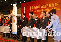 迎圣誕節(jié)之際,特備展覽“中國首次載人航天飛行展Ⅱ--給香港的禮物”十二月二十三日在香港科學(xué)館開幕,其中最珍貴的展品包括楊利偉的工作訓(xùn)練服以及香港特區(qū)和珠江三角洲衛(wèi)星圖等。圖為展覽開幕啟動(dòng)儀式。中新社記者:錢興強(qiáng)