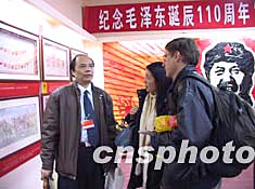 毛澤東兒媳邵華十二月二十三日在湖南韶山舉辦個(gè)人攝影作品展覽,以紀(jì)念父親毛澤東誕辰一百一十周年。圖為邵華將軍向參觀者介紹自己的得意之作。作者:白祖偕