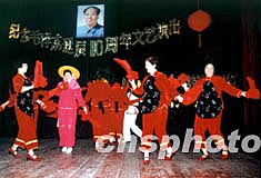 福州各界民眾連日舉辦各種活動紀(jì)念毛澤東誕辰110周年,福建金雞山療養(yǎng)院與福州溫泉街道離退休老人表演歌頌毛澤東的歌舞。作者:鄭祚聲