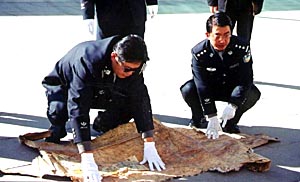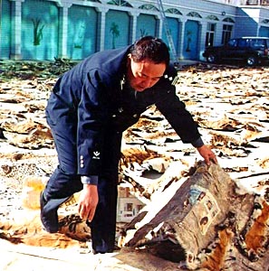 拉薩海關(guān)緝私局副局長(zhǎng)李建文撣撣身上的土告訴記者,10月10日他們將這批動(dòng)物皮張從查獲地點(diǎn)運(yùn)回拉薩海關(guān)時(shí),動(dòng)用了全部警力,花了3個(gè)小時(shí)才將皮張數(shù)量點(diǎn)清。他說(shuō),根據(jù)黑市上的價(jià)格,這批動(dòng)物皮張的總價(jià)值超過(guò)1000萬(wàn)元。“當(dāng)然,由于孟加拉虎、金錢(qián)豹和水獺都是瀕危動(dòng)物,依照國(guó)家法律和國(guó)際公約都是明令禁止射殺、販賣(mài)的,所以它們的價(jià)值遠(yuǎn)非金錢(qián)可以衡量!崩罱ㄎ耐瑫r(shí)強(qiáng)調(diào)。
