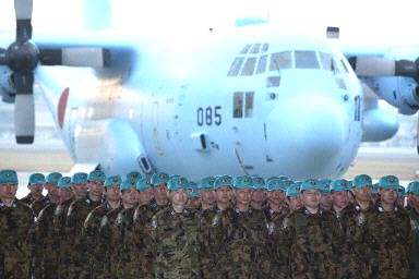 被日本有關方面認為在安全上較有把握的航空自衛(wèi)隊先行前往之后,將進行短時期的適應訓練,而后以設在科威特的航空基地為據點,在伊拉克的巴士拉等機場之間執(zhí)行相關物資的運輸任務。其派遣規(guī)模為三架大型一三0軍用運輸機和二百多名航空自衛(wèi)隊員。