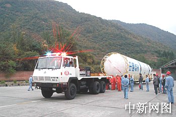 圖:“長(zhǎng)征二號(hào)丙”改進(jìn)型運(yùn)載火箭轉(zhuǎn)運(yùn)途中