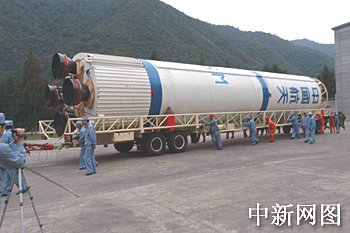 圖:"長征二號丙"改進型運載火箭準(zhǔn)備運往發(fā)射場
