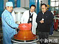 圖:鄭全寶、李占奎查看火箭上面級發(fā)動機(12月30日 03:47)