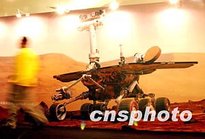 美國“勇氣”號機器人漫游者日前成功登陸火星后,北京一商廈適時展出相關照片,廣受市民歡迎。中新社記者:武仲林