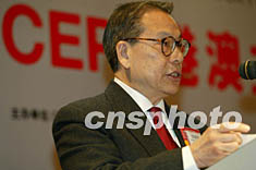 澳門特別行政區(qū)行政會委員、出入口商會會長吳榮恪一月七日在北京出席CEPA香港澳門(內地)推廣周暨內地與港澳經貿合作發(fā)展研討會。中新社記者:滿會喬