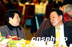 2004年僑界新春茶話會十四日在北京人民大會堂舉行,國務院僑務辦公室主任陳玉杰與全國政協(xié)港澳臺僑委員會主任郭東坡等出席。中新社記者:毛建軍