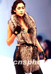1月15日,在香港舉行的“香港國際時裝設(shè)計師表演”專場上,模特展示香港時裝設(shè)計師潘家郎的皮草服飾作品。作者:洪少葵