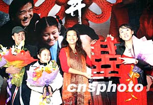 一月十五日,一部由黃宏(左一)、江珊(右二)等主演的溫情喜劇故事片《陽光天井》在北京舉行首映禮,這是喜劇明星黃宏繼《25個孩子一個爹》后執(zhí)導(dǎo)的又一部力作。中新社記者:張勤